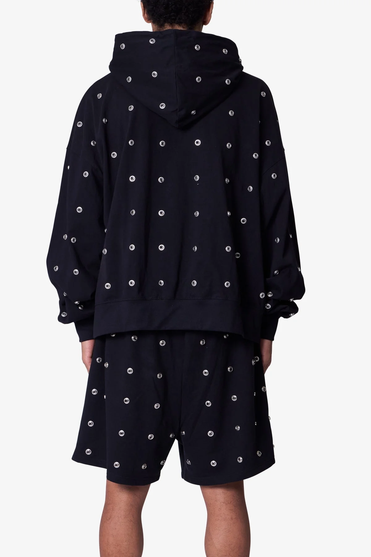 All Over Button Hoodie - Black
